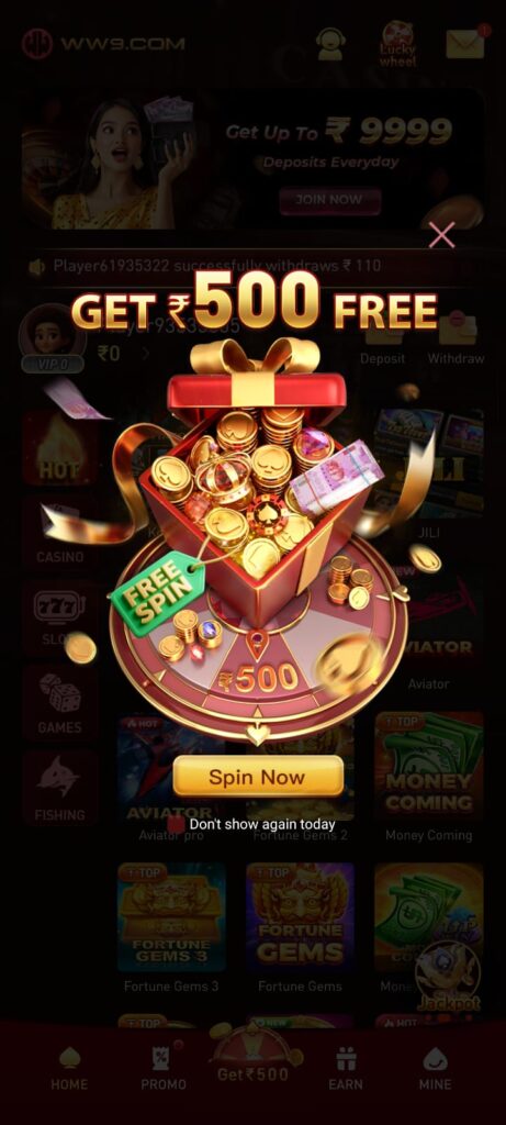 Welcome to WW9 Game Download And get Rs.500 Bonus
